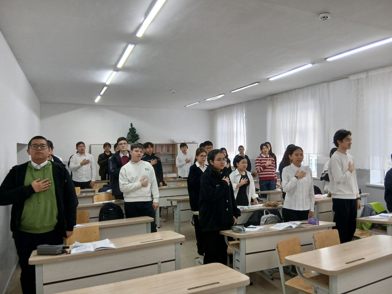 9 B - sinfda o‘zbek tili darsi O‘zbekiston Respublikasining Davlat Madhiyasi ijrosi bilan boshlandi