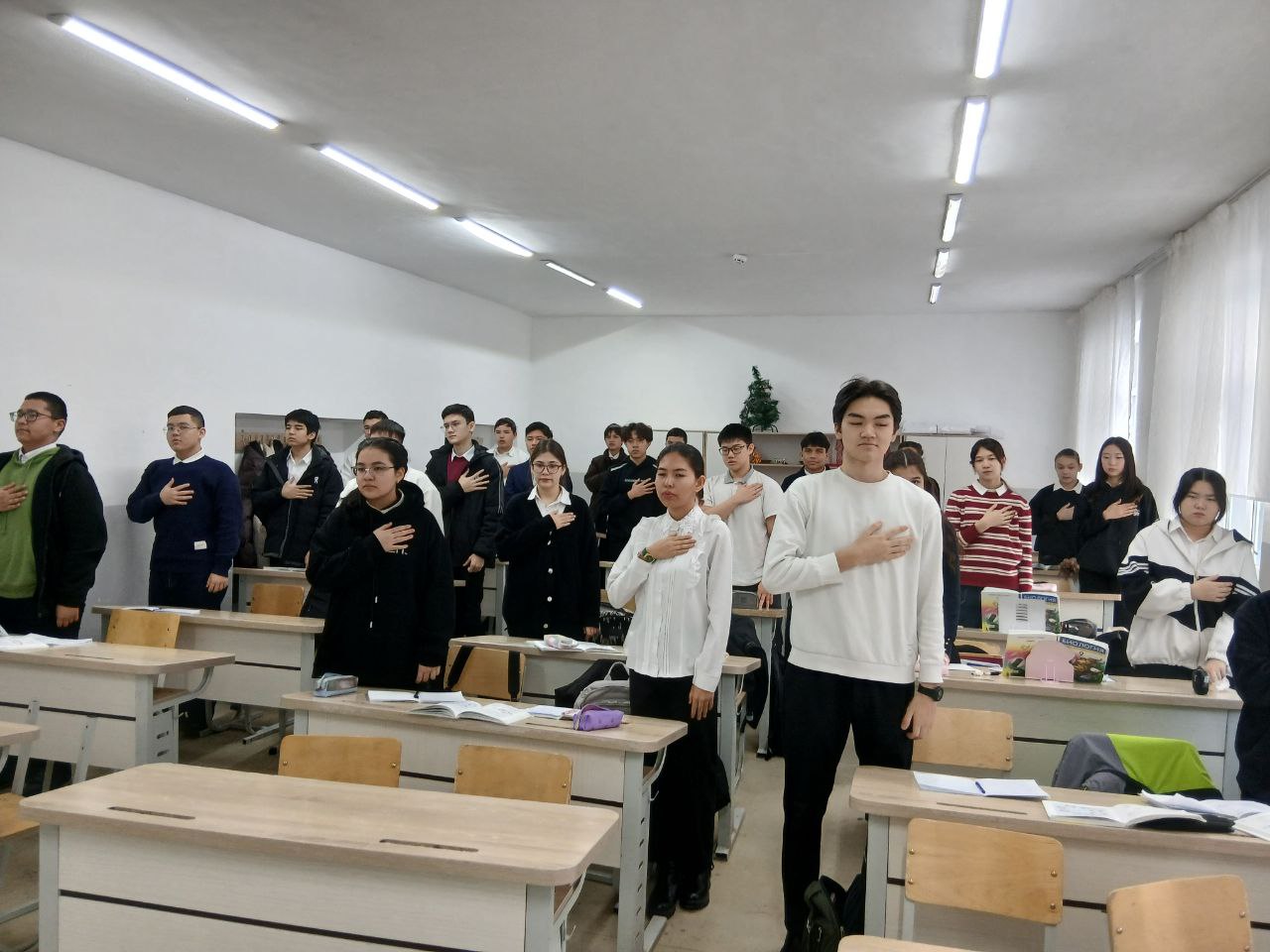 10 G - sinfda o‘zbek tili darsi O‘zbekiston Respublikasining Davlat Madhiyasi ijrosi bilan boshlandi