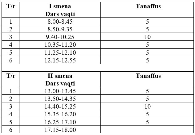 Qo‘ng‘iroqlar jadvali
